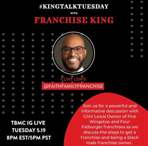 Clinton Lewis was featured on #KingTalkTuesday on TBMC IG to discuss the different aspects of franchise. To stay up to date about future live broadcastings, follow Faith Family Franchise's Instagram Page through the link below.